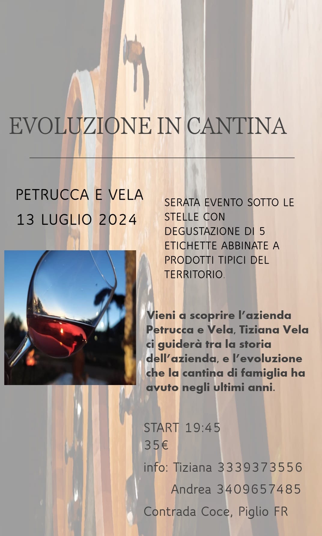 Dopo la presentazione potrete gustare un aperitivo con le etichette della nostra cantina, circondati dai vigneti della nostra tenuta. Un'occasione unica, da non perdere.
